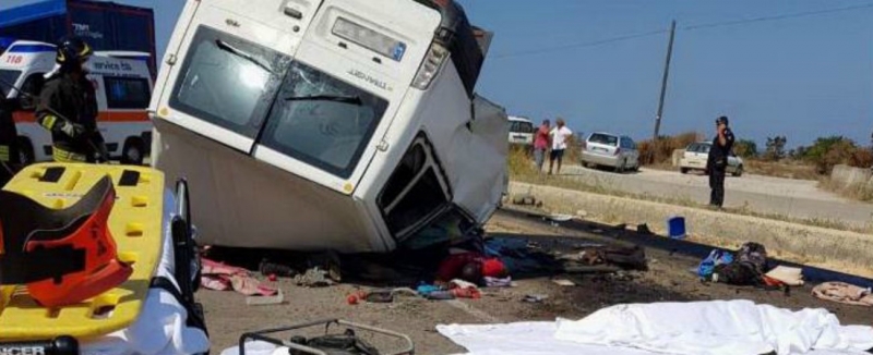 Nuovo incidente tra un pulimino e un tir. Un pulmino carico di braccianti africani: 12 vittime.