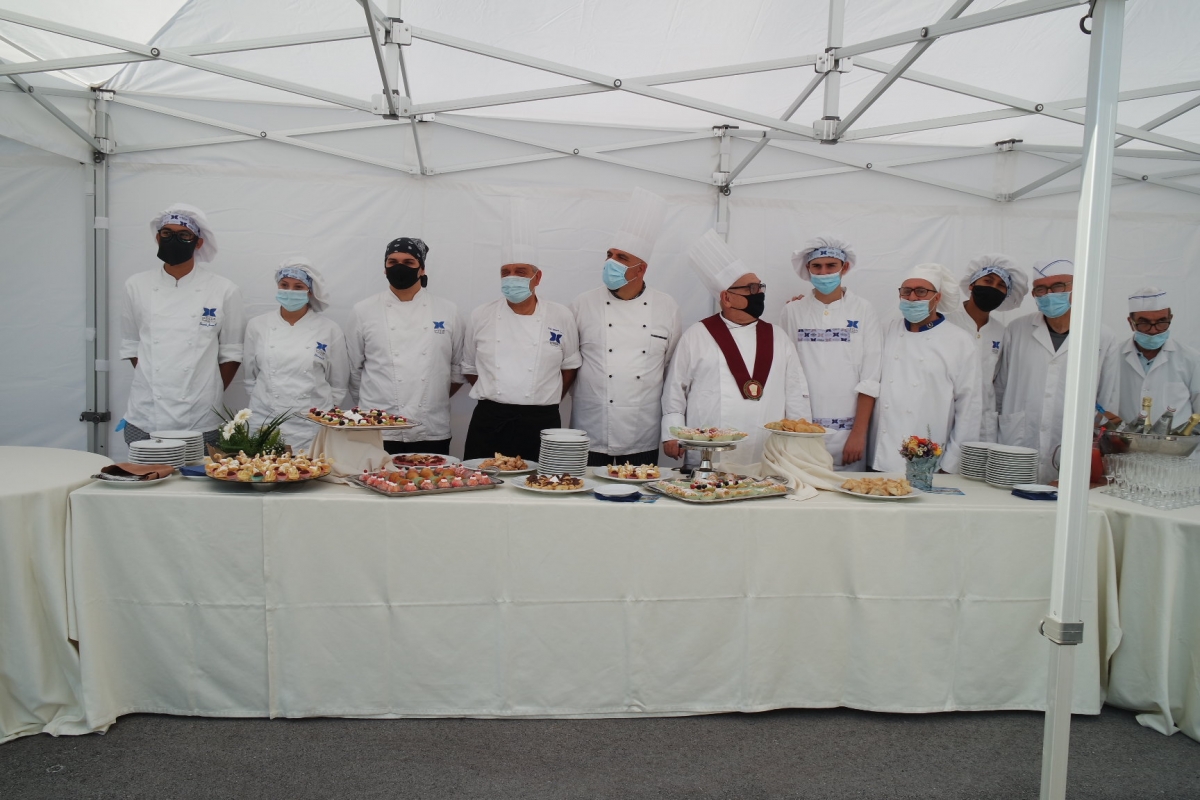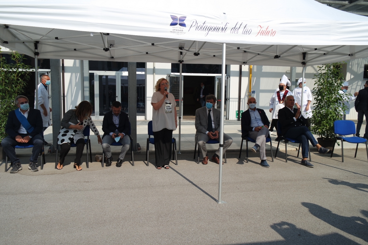 Nell’area all’aperto, ombreggiato da gazebi appositamente installati, rispettando le dovute distanze sanitarie, la Dirigente Alessandra Di Pietro con il Governatore della Regione Abruzzo Marco Marsilio, il Presidente del Consiglio della Regione Abruzzo Lorenzo Sospiri, il Presidente della Provincia di Pescara Antonio Zaffiri, il sindaco del Comune di Pescara Carlo Masci, Daniela Puglisi e Antonello Passacantando per l’Ufficio Scolastico provinciale hanno accolto i numerosi convenuti alla manifestazione. Tra essi i rappresentanti delle Associazioni di categoria, di volontariato e delle Aziende che tradizionalmente collaborano con l’Istituto Alberghiero, il consigliere regionale Guerino Testa e il consigliere comunale Fabrizio Rapposelli.