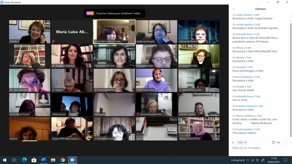 Come le donne e quanto le donne possono essere importanti per l’economia, il lavoro e la società in tutti i suoi aspetti civili e morali? Questa la domanda a cui hanno risposto le varie relatrici che, ieri pomeriggio, 18 febbraio 2021, si sono succedute in un webinar molto importante ed interessante. Ad organizzare l’evento la FIDAPA Distretto Sud Est Bpw Italy con la Presidente Annamaria Musacchio, con tutto lo staff e con la partecipazione di donne che in prima linea lottano per affermare l’importanza della donna in tutti gli aspetti del lavoro che, se ha anche ruoli di direzione e gestione, ha molteplici riflessi e riscontri sull’intera società che ne trae evidenti benefici.