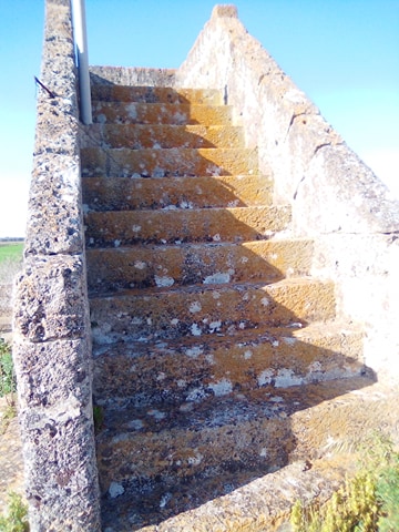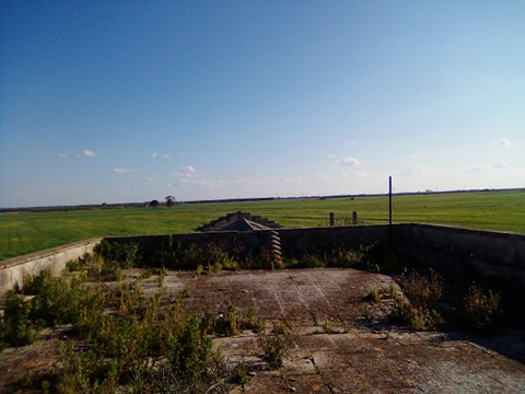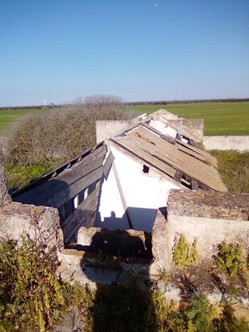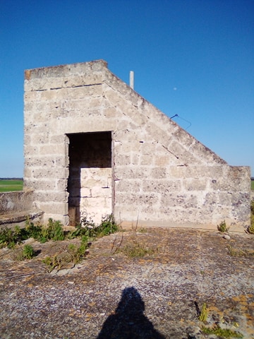 La struttura versa in stato di completo abbandono, così come dimostrano i tetti delle strutture annesse alla masseria, quasi crollati del tutto. Intorno all'immobile giacciono pericolosi rifiuti, come tegole di amianto, che stiamo attenti a non sfiorare. Dal portone principale si entra in un ambiente dalla forma quadrata: a sinistra una scala conduce al tetto, mentre di fronte un'altra apertura conduce nella corte della masseria. Qui è possibile vedere le case dove vivevano i massari, ormai ridotte a ruderi. In questa zona c'erano pure le stalle. Notiamo che è molto pericoloso addentrarsi nella corte, in quanto l'erba alta non ci consente di vedere bene dove mettiamo i piedi. Questa volta decidiamo di non rischiare, limitandoci soltanto a fare delle foto alle strutture. Ci colpisce da subito la scala: quest'ultima sembra ancora molto solida, per cui decidiamo di percorrerla. Arriviamo quindi sul tetto: qui notiamo un'altra struttura con delle scale, che non conduce a nessun ambiente. Si tratta di una specie di “torretta” come l'abbiamo chiamata. Una struttura “strana” per quella che doveva essere solo una masseria. In realtà, come abbiamo scoperto durante le nostre ricerche, questa “torretta” doveva servire proprio ad avvistare imminenti pericoli, come incursioni di predoni o dei turchi. La masseria è molto antica, lo provano i muri, per cui doveva essere già in piedi durante i secoli XV-XVI, quando i turchi facevano razzie nel territorio salentino. Ce lo dimostra anche la struttura di masseria Favarella, nei pressi di Acaya, in provincia di Lecce. Questa struttura, caratterizzata da una torre quadrata, alla sommità ha proprio una costruzione simile a quella che si vede a masseria Bardi Nuovi. Scendiamo giù, nel cortile a sinistra della masseria. Da qui possiamo notare di come la struttura della masseria sia scandita da un corpo più massiccio, caratterizzato appunto da una specie di torre, alla cui sommità c'è la struttura che si alza sulla campagna circostante. Dalla “torretta” è possibile godere di un paesaggio spettacolare, con una vista che spazia per decine di chilometri nell'entroterra tuturanese e fin quasi sulla costa. Una vista mozzafiato che ci lascia a bocca aperta: impossibile non fare foto.