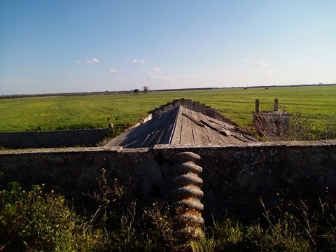 Le mountain bike faticano a camminare su un sentiero molto accidentato. Dobbiamo procedere in fila indiana, mantenendo la distanza sia per le misure anti Covid ma anche per evitare spiacevoli incidenti tra i mezzi. Ad un tratto il sentiero mostra grosse buche piene d'acqua. Le bici si tuffano letteralmente nelle pozzanghere, mentre il sentiero comincia a diventare scivoloso per via del fango, che si ficca anche nei freni delle due ruote. Ma lo spettacolo intorno a noi vale la pena della fatica: in pochissimi minuti ci troviamo circondati da una vasta distesa di grano. Sembra un enorme prato verde. Dopo poco, in fondo ad una curva, svetta il profilo della masseria Bardi Nuovi. Da subito notiamo la sua particolarità, molto diversa da Bardi Vecchi. Dopo alcuni minuti arriviamo nello spiazzo antistante la struttura. Da subito emerge l'imponente portone di ingresso, che conduce in un ambiente con soffitto a volta stellata. Cominciamo quindi ad esplorare l'immobile.