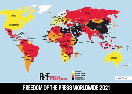 Reporter Senza Frontiere (RSF) stila il suo rapporto annuale, ha analizzato 130 Paesi, ed è venuto fuori che in quasi tutte le nazioni il giornalismo è ancora ostacolato, affermando che urgerebbe un "Principale vaccino contro la disinformazione". Rispetto all'anno scorso, solo 12 Paesi su 180, ovvero il 7%, contro l'8% del 2020, mostrano una "buona situazione". Secondo RSF, la "zona bianca" "non è mai stata così ristretta dal 2013". Anche la pandemia ci ha messo il suo, e ha alimentato e aumentato la "censura" nei Paesi più 'imbavagliati' come l'Arabia Saudita (al 170/o posto) o la Siria (173/a), secondo l'ong, ha "provocato un enorme blocco degli accessi alle fonti per i giornalisti, solo in parte giustificato da precauzioni sanitarie". La Norvegia rimane al primo posto per il quinto anno consecutivo davanti a Finlandia e Svezia, che torna terza a scapito della Danimarca (4/a, -1). La Germania esce dalla 'zona bianca' (13/a, -2) "perché decine di giornalisti sono stati attaccati da manifestanti vicini a movimenti estremisti e cospiratori durante le manifestazioni contro le restrizioni anti Covid". Nel complesso, l'Europa rimane il continente più sicuro, ma sono aumentate vertiginosamente, secondo Rsf, le aggressioni e gli arresti abusivi, soprattutto in Francia (34/a) durante le manifestazioni contro il disegno di legge "sicurezza globale". L' Italia rimane al 41/o posto. Per gli Stati Uniti, la situazione rimane "piuttosto buona" essendo 44/a, +1 rispetto allo scorso anno "anche se l'ultimo anno di mandato di Donald Trump è stato caratterizzato da un numero record di aggressioni (quasi 400) e arresti di giornalisti (130). Vede l'ingresso in "zona rossa" il Brasile, "dove il presidente Bolsonaro ha fatto del dileggio ai giornalisti il suo tratto distintivo" e anche la Russia è stabile (150/a, -1) che si è adoperata per "limitare la copertura delle manifestazioni dei sostenitori di Alexeï Navalny". Infine, anche se l'Africa rimane il continente più violento per i giornalisti, ha registrato qualche miglioramento in Burundi (147 /o, +13), Sierra Leone (75/o, +10) e Mali (99/o, +9). (Foto e fonte Ansa)