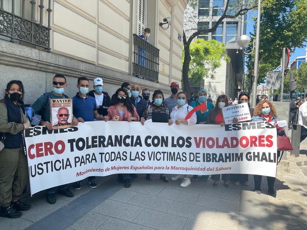 Khadijatou Mahmoud Zoubir cittadina spagnola, vittima dello stupro del criminale Brahim Ghali: "Siamo qui oggi a manifestare davanti al tribunale affinché la giustizia sia fatta". La vittima khadijatou ha partecipato al sit-in di protesta nello stesso momento dell'interrogatorio di Ghali.