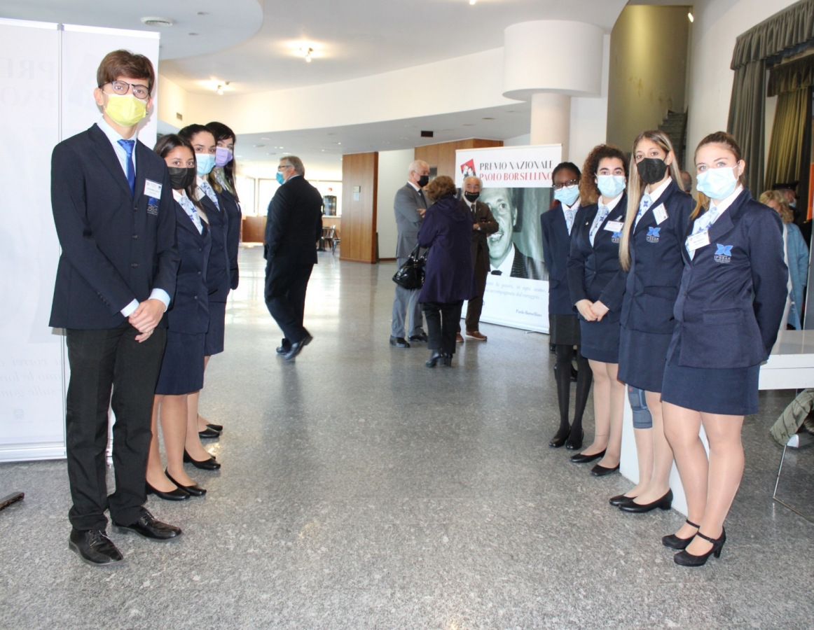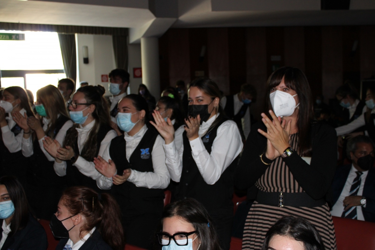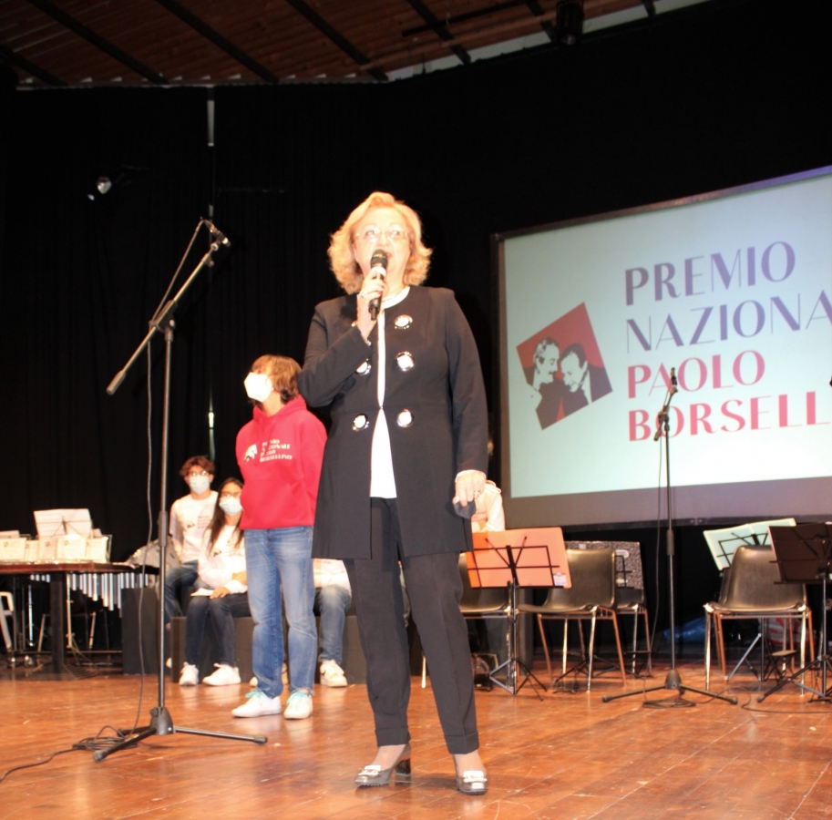 Oltre la Docente De Fabritis, durante il suo discorso di presentazione, la Dirigente Alessandra Di Pietro ha ringraziato i ragazzi presenti, Leo Nodari per la forza e la perseveranza nel portare avanti il progetto del Premio nonostante i due anni di fermo, Rossella Sperandio, Presidente instancabile e generosa dell’Associazione Falcone e Borsellino, e gli infaticabili docenti della Scuola da lei diretta, Renata Di Iorio, Rossella Cioppi, Roberta Degli Eredi, Edoardo Oliva che hanno collaborato fattivamente nei Laboratori di Legalità per testimoniare la passione e la conoscenza che il Premio porta alla scuola intera.