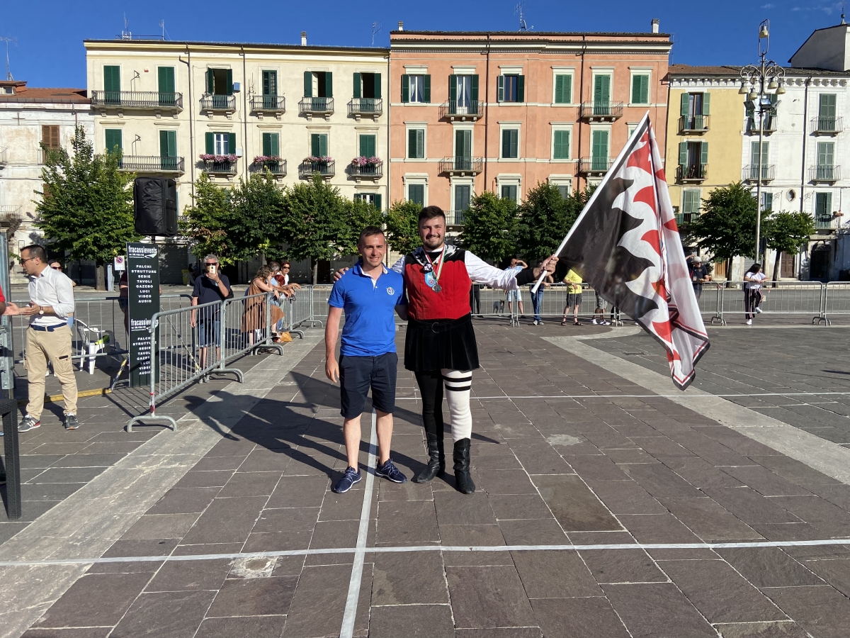 Si è svolta, domenica 10 luglio in Piazza Garibaldi a Sulmona, la terza serie del campionato nazionale F.I.Sb per musici e sbandieratori storici: la Tenzone Bronzea. L’evento, organizzato dal Borgo San Panfilo, ha richiamato in città oltre un centinaio di atleti provenienti da tutta Italia.