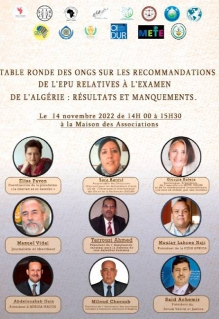 Durante l'Esame Periodico Universale (EPU), dell’Algeria sulla situazione dei diritti umani dell’11 novembre 2022 davanti al Consiglio dei diritti umani a Ginevra, la delegazione algerina guidata dal Ministro della Giustizia, Abderrachid Tabi ha formulato una falsa argomentazione sugli impegni di cooperazione tra l’Algeria e i Meccanismi delle Nazioni Unite.