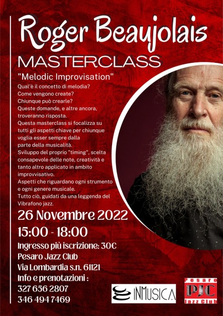 Sabato 26 il Pesaro Jazz Club, in collaborazione con l'Associazione InMusica di Pesaro, organizza un masterclass che vedrà la presenza di Roger Beaujolais che approfondirà vari argomenti: l'improvvisazione, la creazione di una melodia, il timing, la scelta delle note e il concetto di creatività.