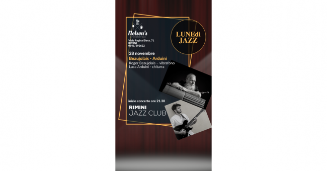 Lunedì 28 novembre alle 21:30 il vibrafonista inglese Roger Beaujolais, uno dei massimi esperti dello strumento, insieme a Luca Arduini alla chitarra saranno al Nelson's 21th Century Bar di Rimini con un esclusivo concerto all'insegna del jazz e dell'arte dell'improvvisazione.