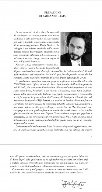 Il saggio si intitola “Mario Persico e la sua produzione operistica”, resoconto di un viaggio nelle memorie, nei ricordi e nella musica di un musicista quasi dimenticato. Per questo l’autore, in questo libro, concentra la sua attenzione sul musicista che ha messo in musica, tra le varie composizioni, un’opera fondamentale di Goldoni “La Locandiera”, e la cui musica risente del melodramma verista italiano e impressionismo francese, ma ha anche le sue origini più lontane nel filone della grande scuola partenopea che fa capo ad Alessandro Scarlatti.