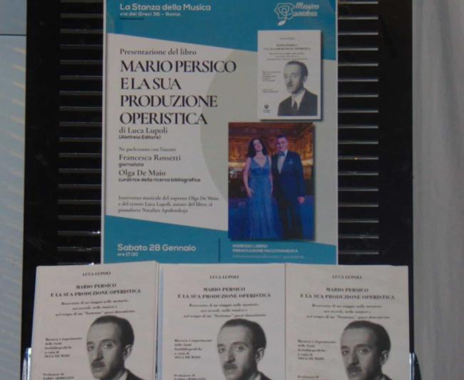 Luca Lupoli,in veste di autore,ha illustrato nel dettaglio, attraverso una approfondita riflessione, la figura a tutto tondo del M° Persico, presso La Stanza della Musica a Roma , assieme al soprano Olga De Maio, curatrice delle ricerche biobliografiche e descritto la ricostruzione della posizione del musicista nella storia della musica delineata nel suo saggio intitolato appunto "MARIO PERSICO e LA SUA PRODUZIONE OPERISTICA",Alètheia Editore,con la preziosa prefazione del M° Fabio Armiliato.