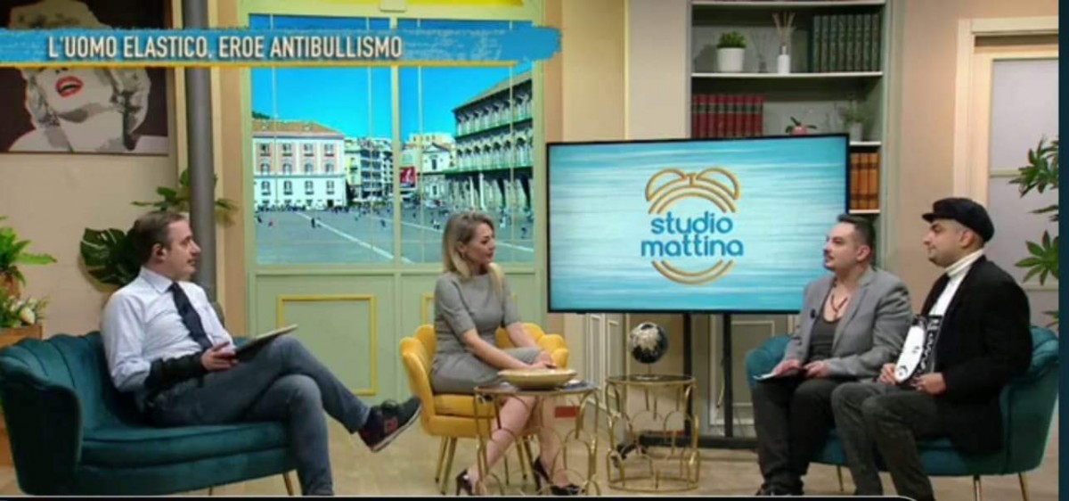 Nunzio Bellino e Giuseppe Cossentino ospiti del format tv Studio Mattina su Canale 9, intervistati dai giornalisti Barbara Petrillo e Marco Caiano presentano e raccontano il libro a fumetti ” L’Uomo Elastico” che continua ad avere uno straordinario seguito e successo. Scritto da Bellino e Cossentino, disegnato da Tiziano Riverso ed edito da Antea Edizioni.