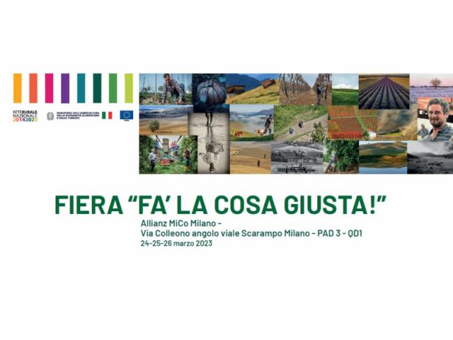 La Rete Rurale Nazionale è tra i protagonisti della fiera “Fa’ la cosa giusta!” di Milano. L’appuntamento è dal 24 al 26 marzo l’Allianz MiCo di Fiera Milano (PAD 3 – QD1) con un fitto programma di incontri e dibattiti, che coinvolgeranno il pubblico in un “faccia a faccia” con esperti, imprenditori e istituzioni.