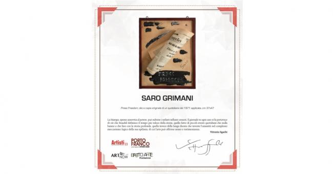 Ma la sorpresa più grande doveva ancora arrivare. Qualche giorno dopo, Saro riceve una nota critica da parte del famoso critico d'arte Vittorio Sgarbi, rimasto colpito dal suo quadro intitolato "Press Freedom", che raffigura un giornale in pieno periodo di guerra fredda, elevato a dignità di opera d’arte.