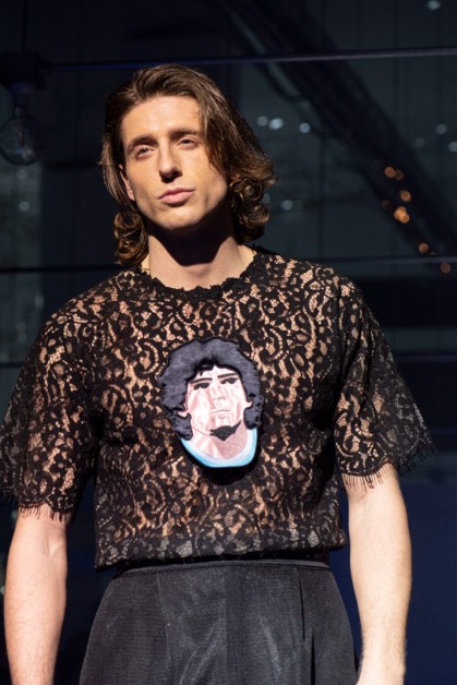 La moda si fa pensiero ecologista, sociale, esistenziale e diventa show. E’ cosi che lo stilista napoletano vuole parlare al mondo e trasmettere le sue idee in particolare sulla società che “è un organismo vivente in continua evoluzione” dice “ed il cambiamento caratterizza tutte le sue forme. Cambia la moda, l’arte, l’architettura, i paesaggi, la tecnologia… cambiano i punti di riferimento, i valori, i nostri eroi e quindi i nostri miti…” da questa riflessione la collezione prende il nome di Miti Contemporanei.
