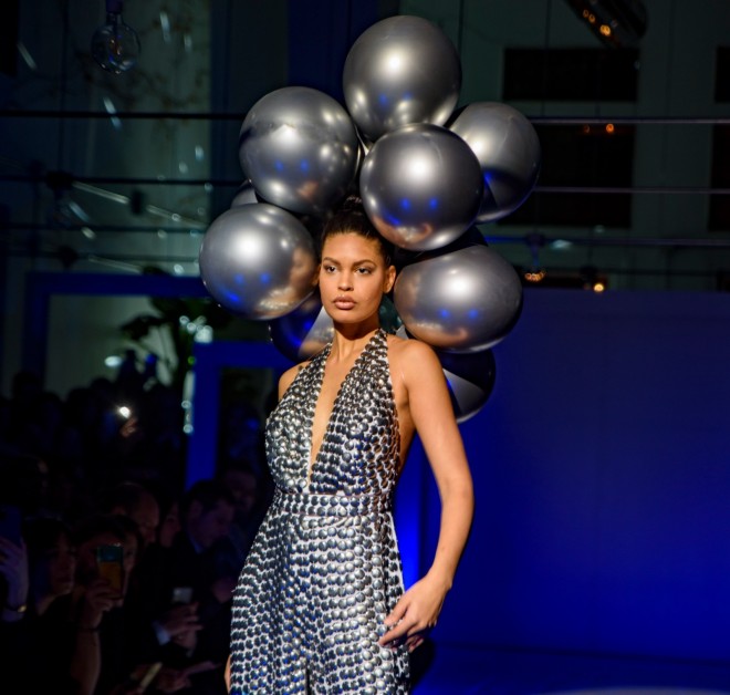 riciclati, raccolti da aziende che distribuiscono campionari, con un’attenzione particolare ai colori e ai materiali. Il creativo, inoltre, ha utilizzato bottiglie di plastica che poi ha appiattito con i ferri a caldo per creare patine ritagliabili e produrre paillettes da applicare sull’abito cult della linea che ha concluso il defilè per rappresentare il pensiero madre della collezione, ossia che “volere è potere, anche quando si tratta di rispettare la natura”.