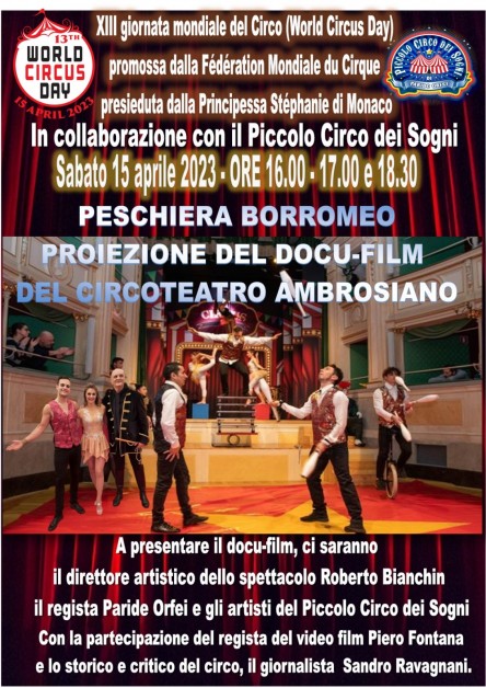 Un appuntamento d’eccezione andrà in scena sabato 15 aprile 2023 a Peschiera Borromeo (Milano), in occasione della “Giornata mondiale del Circo” (World Circus Day). Questa ricorrenza, che nasce per iniziativa della Fédération Mondiale du Cirque presieduta dalla Principessa Stéphanie di Monaco, organizzatrice del Festival Internazionale del Circo di Montecarlo, si svolge da 13 anni in tutto il mondo con l’obiettivo di «preservare le tradizioni circensi» e favorire lo sviluppo di questa forma d’arte unica «che non conosce confini o barriere linguistiche».