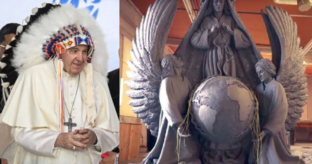 Ancora un angelo femmina coi capelli lunghi, torna nell’inquietante scultura della psuedo-Maria dei Nodi portata in Canada dall’antipapa.