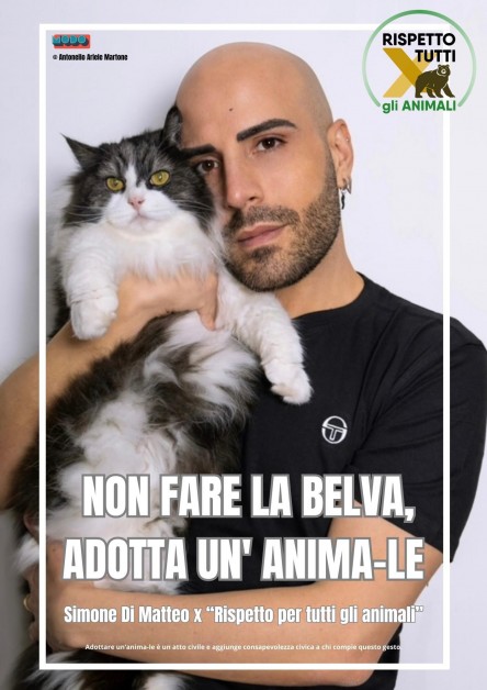 Nata nel 2016, Rispetto per Tutti gli Animali è un’associazione senza fini di lucro che conta più di due milioni di utenti registrati e mira ad ottenere l’eliminazione di ogni forma di violenza sugli animali. Il suo programma è monotematico, svincolato da qualsivoglia tipo di pensiero ideologico-politico e legato all’ambito economico, salutare nonché ambientalistico. Non a caso, i punti principali sui quali si fonda sono: la tutela degli animali e dell’ecosistema, la lotta alla caccia e al bracconaggio, la conservazione della biodiversità e l’educazione ambientale. Questioni, queste, sulle quali ampiamente si discute, ma la cui piena realizzazione risulta non facile. Da qui, l’idea di De Salvo di avvalersi di una voce fuori dal coro come quella di Di Matteo per poter conferire una rinnovata forza alle sollecitazioni del suo team e per far sì che vengano puntati i riflettori su problematiche reali a cui va trovata una soluzione.