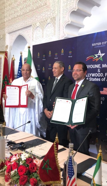 Tutto ciò è avvenuto nell'ambito della cooperazione decentrata tra Marocco e Stati Uniti e in sintonia con il riconoscimento americano della marocchinita delle province saharawi. A firmare l'accordo di gemellaggio sono stati il presidente del consiglio comunale di Laayoune, Moulay Hamdi Ould Errachid e Josh Levy, sindaco della città di Hollywood in Florida. La cerimonia si è svolta in presenza del Wali della regione di Laayoune Sakia El Hamra, governatore della provincia di Laayoune, Abdeslam Bekrate e degli eletti delle due città .