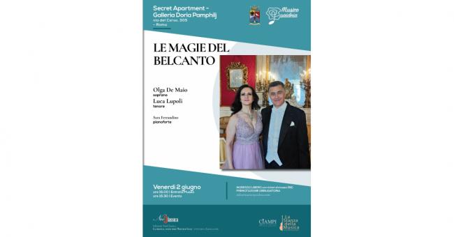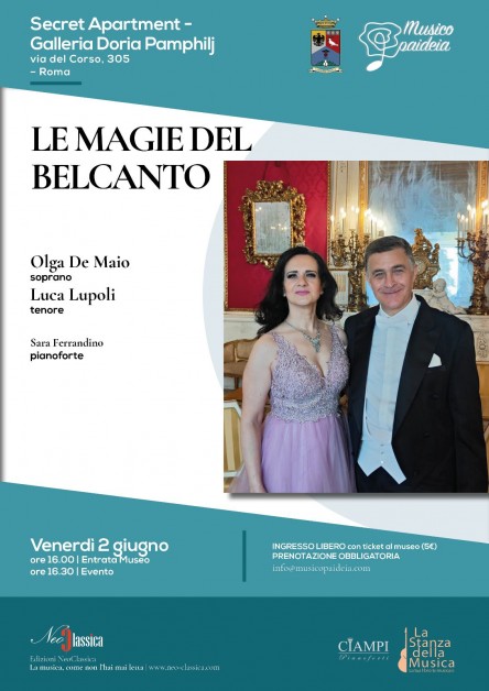 Il prossimo 2 giugno 2023 alle h.16.30 il soprano Olga De Maio ed il tenore Luca Lupoli saranno protagonisti nella splendida e storica cornice della Galleria Doria Pamphilj - Palazzo Doria Pamphilj di Roma- Secret Apartaments- del recital lirico " Magie del Belcanto", in collaborazione con l'Associazione Culturale Musicopaideia, accompagnati al pianoforte dal M° Sara Ferrandino .