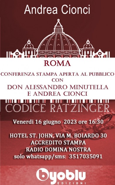 Moderatore e correlatore: Dott. Andrea Cionci, giornalista e scrittore, autore del bestseller “Codice Ratzinger” (Byoblu 2022)