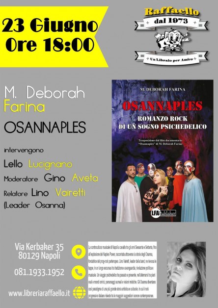 Dopo l’anteprima al “Salone Internazionale del Libro di Torino”, non poteva che iniziare da Napoli il tour di incontri e presentazioni di “Osannaples. Romanzo rock di un sogno psichedelico” di M. Deborah Farina, autrice e regista dell’omonimo film-documentario, quale sua visionaria trasposizione letteraria.