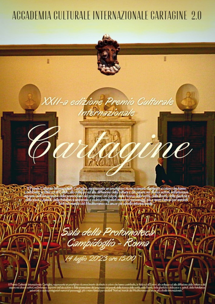 Il Premio è da sempre destinato a coloro che hanno contribuito, in Italia e all’Estero, allo sviluppo e alla diffusione della cultura e del sapere nei diversi settori, nell’interesse supremo dell’elevazione e del progresso dei popoli, al benessere dell’umanità , alla ricerca della verità , della libertà , della giustizia e della pace, presupposti essenziali della fratellanza universale. L’iniziativa, organizzata dall’associazione culturale internazionale Cartagine 2.0, nasce come un ideale Ponte di Cultura e si svolge in forma itinerante tra le nazioni che si affacciano sul Mediterraneo, con un ringraziamento particolare al suo Presidente il Dott.Alessandro della Posta