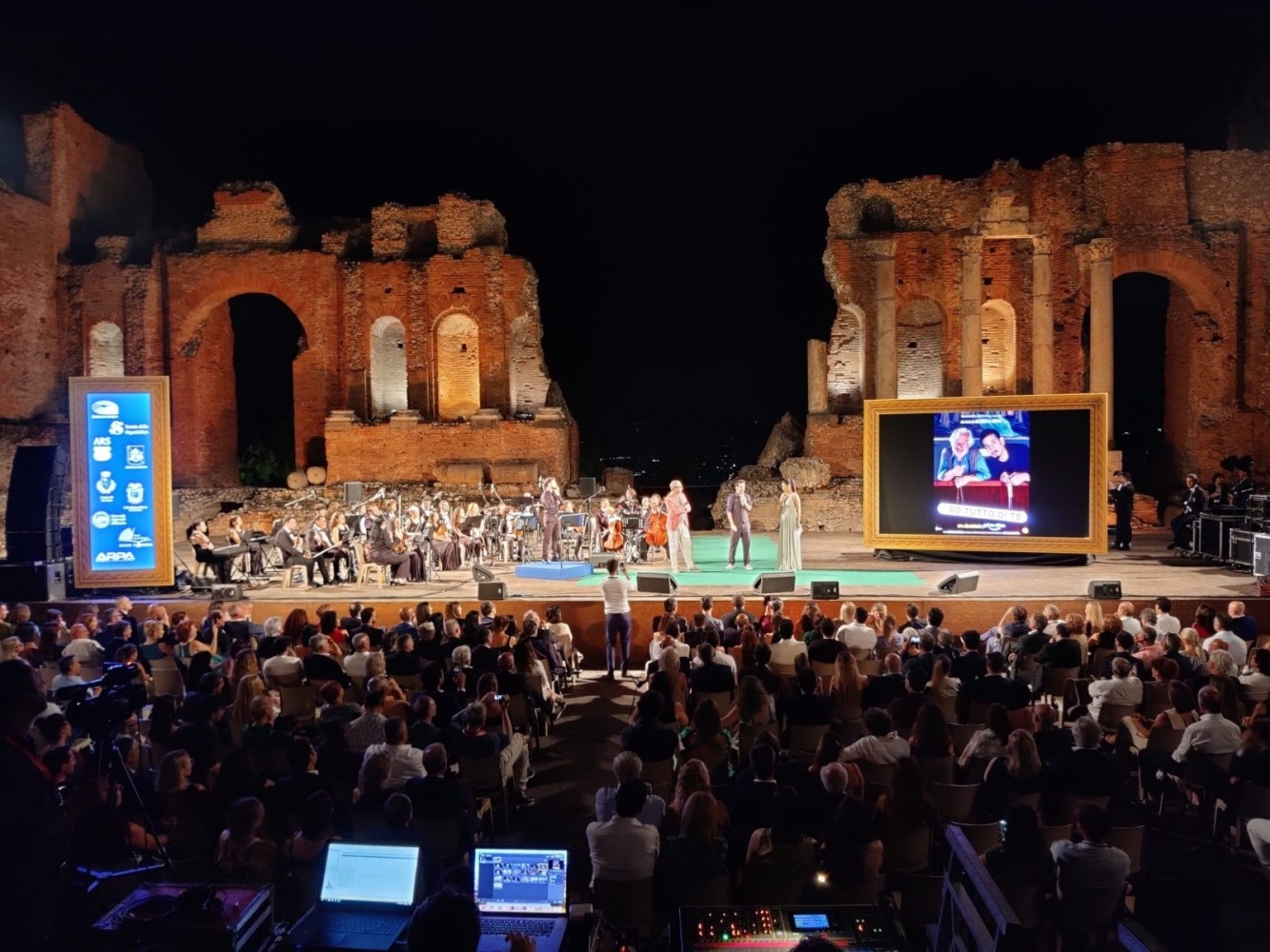 Ma in primo piano c’è stata anche la solidarietà. All’evento ruolo da protagonista per l’AISM (Associazione Italiana Sclerosi Multipla) che sul palco del teatro greco è stata rappresentata dall’attrice Antonella Ferrari, testimonial per sensibilizzare sull'importanza della ricerca scientifica contro questa grave patologia del sistema nervoso centrale. Ferrari è stata accompagnata sul palco dalla presidente Aism Sicilia Deborah Chillemi. Toccante il suo messaggio di speranza rivolto a chi soffre di questa patologia. “Ci si può convivere e realizzare i propri sogni”, ha detto.