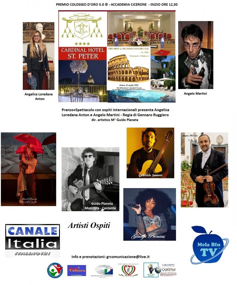 La cerimonia si terrà durante il pranzo di gala e spettacolo riservato presso l’Hotel Cardinal St. Peter a Roma e sarà presentata da Angelica Loredana Anton e Angelo Martini, con la modella Emily Engst addetta alla consegna premi. Durante la premiazione si esibiranno gli artisti il M° Gladys, il M° Gaspare Maniscalco accompagnato dal chitarrista Gabriele Santori, il ballerino M° Adriano Mauriello, e il M° Guido Planeta.