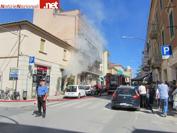 Attimi di trepidazione e caos su una delle vie principali e più trafficate di Follonica, sulla costa toscana. Intorno alle 9,30 un locale, che ospita un'erboristeria, per cause ancora da accertare ha visto al suo interno svilupparsi delle fiamme, che in poco tempo si sono propagate per tutto il fondo. La proprietaria, una giovane ragazza del posto, ancora non aveva aperto l'attività ed era impegnata in una consegna quando, tornando verso il suo negozio, ha visto un denso fumo che lo stava avvolgendo. Sono scattate le chiamate di soccorso, che hanno visto arrivare sul posto una pattuglia dei Carabinieri e poco dopo la squadra dei Vigili del Fuoco dal distaccamento cittadino, mentre decine di curiosi si accalcavano sul marciapiede di fronte al negozio e gli uomini dell'Arma che cercavano di fare spazio nella subito congestionata strada ai mezzi di soccorso. I vigili hanno attaccato le fiamme e con cautela si sono spinti all'interno, provvedendo ad areare immediatamente il locale, ancora avvolto in un denso fumo mentre veniva raccomandato ai residenti delle abitazioni intorno di non esporsi sui terrazzi. Nel frattempo è arrivata anche un'ambulanza della Croce Rossa Italiana, che ha soccorso la giovane proprietaria, in evidente stato di shock, dopo che in un primo momento si era pensato ad eventuali intossicati dal fumo acre dell'incendio. Scortato da una pattuglia dei Carabinieri, a causa del pesante traffico che si è formato sulla via chiusa al traffico per consentire le operazioni di soccorso, è arrivata anche un'autobotte di appoggio dei Vigili del Fuoco, che hanno così potuto spegnere in sicurezza il rogo e provvedere alla bonifica del negozio, al cui interno è stato appurato non esserci persone né animali. Una mattinata davvero movimentata per la cittadina di Follonica, che proprio ieri pomeriggio era stata scossa da una “bomba d'acqua” che aveva provocato disagi, allagamenti e alcuni danni ad infrastrutture.