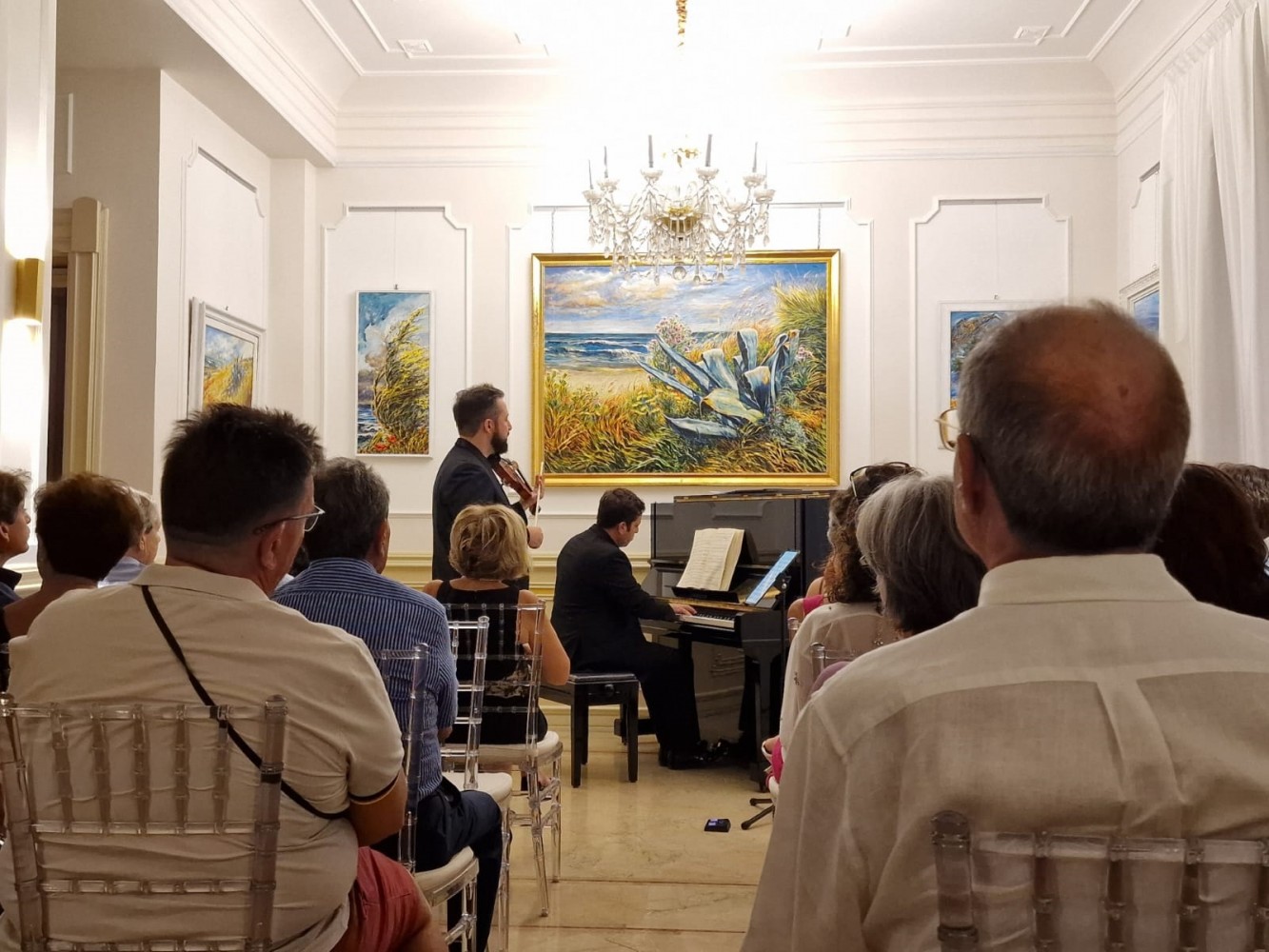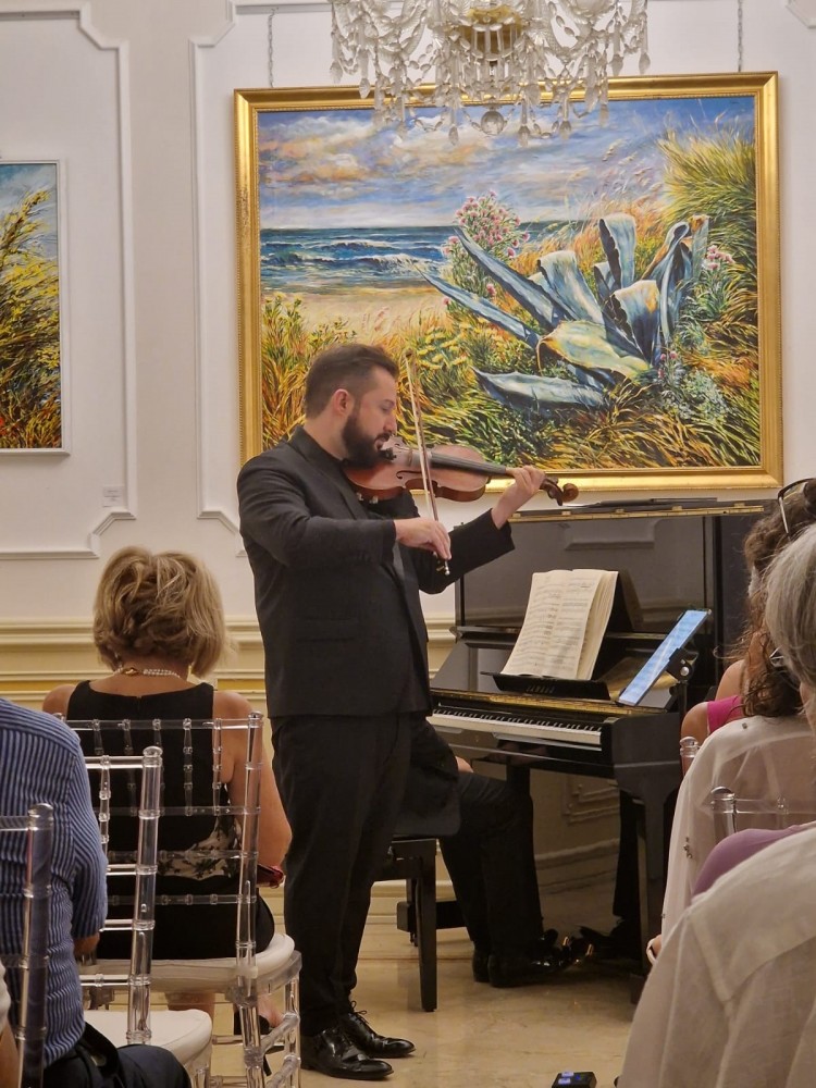 Infatti, cenando, gli ospiti hanno assistito ad una magica Sonata a Kreutzer, un continuo dialogo tra pianoforte e violino dove i due strumenti sono stati impegnati in un duello melodico ricco di vibrazioni malinconiche, che sottintendono alla romantica architettura del pezzo.