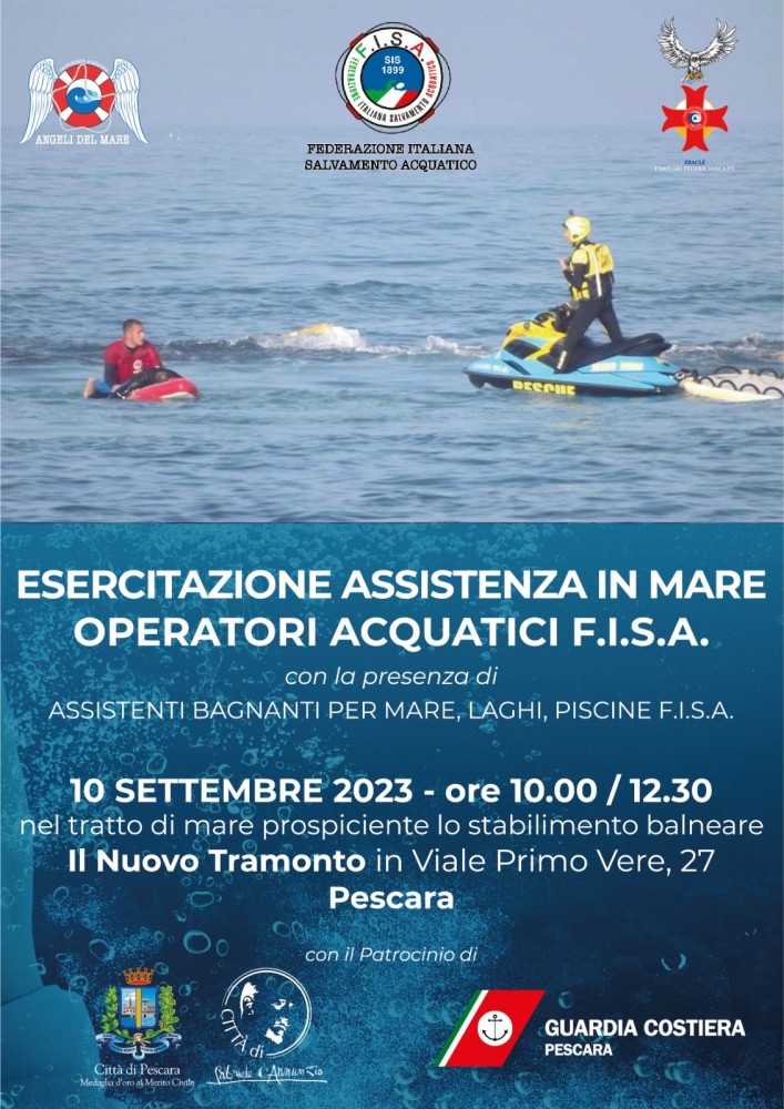 Grande successo e partecipazione di pubblico per l’evento di prevenzione e formazione svoltosi domenica 10 settembre 2023 sul Litorale in concessione allo Stabilimento Balneare Il Tramonto (Pescara, Viale Primo Vere 27), in continuità con molti progetti sviluppati negli ultimi anni, tutti tesi all’informazione, alla sicurezza e alla consapevolezza dei cittadini nei confronti dei pericoli del mare. Soddisfatti i vertici della F.I.S.A. Federazione Italiana Salvamento Acquatico, capofila del progetto in collaborazione con il Comune di Pescara, Guardia Costiera Pescara. Promotori del progetto Associazione Eracle Templari Federiciani aps affiliata F.I.S.A. Protezione Civile, diretta da Marco Schiavone e Angeli del Mare diretta da Carmen Padalino.
