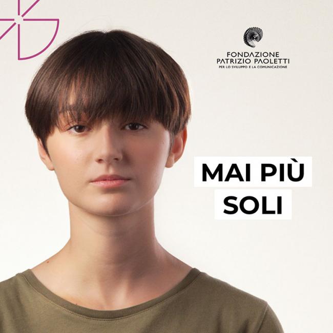 Emily e Samuele, studenti, Floriana, mamma, sono i volti veri della campagna, i beneficiari dei progetti di Fondazione Patrizio Paoletti che insieme a Elena Perolfi, vice-presidente e responsabile dei progetti pedagogici della Fondazione, lanciano l’appello a tutti: “Mai più soli”.