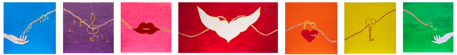 Come ogni artista, arrivano i momenti difficili, dove ci si sente vuoti, e non si hanno più idee per la creatività ed altro. Grazie alla mia adorata nipote Michelle, che in quei momenti era la mia gioia, mi ha dato questa forza nuovamente ed insieme abbiamo creato queste 7 opere che guardando nell’anima profonda di me. Così che ho creato questo grande cuore Michelangelo, con le ali, che rappresenta la purezza, sincerità ed amore incondizionato.