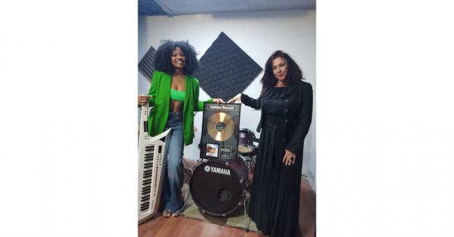 Disco d’oro per la canzone “Toccami”, che in tanti hanno ascoltato questa estate sulle spiagge e nei contesti nazionali di intrattenimento. Delegata alla consegna la nota attrice, autrice di canzoni interpretate da grandi artisti, esperta di musica, coach di cinema, e sceneggiatrice Claudia Cotti Zelati.