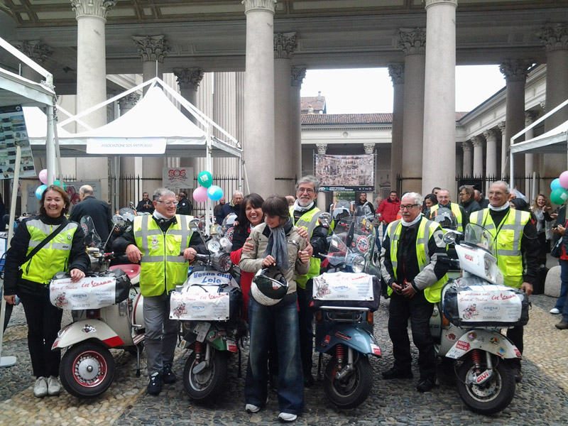 Alla serata erano presenti, oltre al pubblico ed agli appassionati, anche personalità e sostenitori dell’impresa tra cui Consiglieri del Comune di Santhià (VC) - sede dell’arrivo, Gabriele Posillipo e Simonetta Todi, la Vice Presidente di ANGSA Piemonte, Tiziana Volpi, il Presidente di ANGSA Biella, Roberto Bertola, ed i presidenti dei Vespa Club di Biella, Pier Mario Garbino e di Santhià , Gianni Dispinzieri, organizzatori rispettivamente della partenza e dell’arrivo.