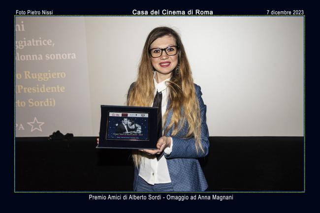 Angelica Loredana Anton si aggiudica il “Premio Amici di Alberto Sordi – Omaggio ad Anna Magnani” il 7 dicembre scorso alla Casa del Cinema di Roma dopo la proiezione del capolavoro diretto da Gennaro Ruggiero “Anna una voce umana”, e scritto da Claudia Cotti Zelati, in cui interpreta magistralmente il ruolo di Anna.