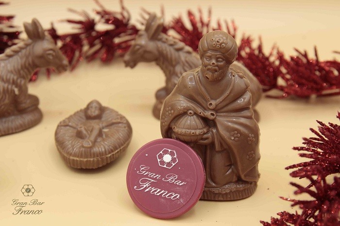 La tradizione vuole che nel giorno dell’Immacolata si addobbi la casa a festa per Natale, con albero, luci e presepe. L’innovazione, invece, fa spuntare quest’anno dei golosi pastori di cioccolato all’interno di un presepe classico napoletano, realizzato da un maestro di San Gregorio Armeno. La trovata è di Giuseppe Marzio, giovane titolare dello storico Bar Franco di Fuorigrotta a Napoli, situato in viale Augusto 35. L’idea di Giuseppe è semplice ma allo stesso tempo ricca di amore per la tradizione delle feste: aggiungere dei pastori interamente fatti di cioccolato in un presepe anch’esso completamente lavorato artigianalmente, come la regola comanda a Napoli. Pastori che sono stati poi donati alla clientela e fatti assaggiare per un’intera giornata, dalla mattina fino al tardo pomeriggio di venerdì 8 dicembre, fino ad esaurimento scorte.