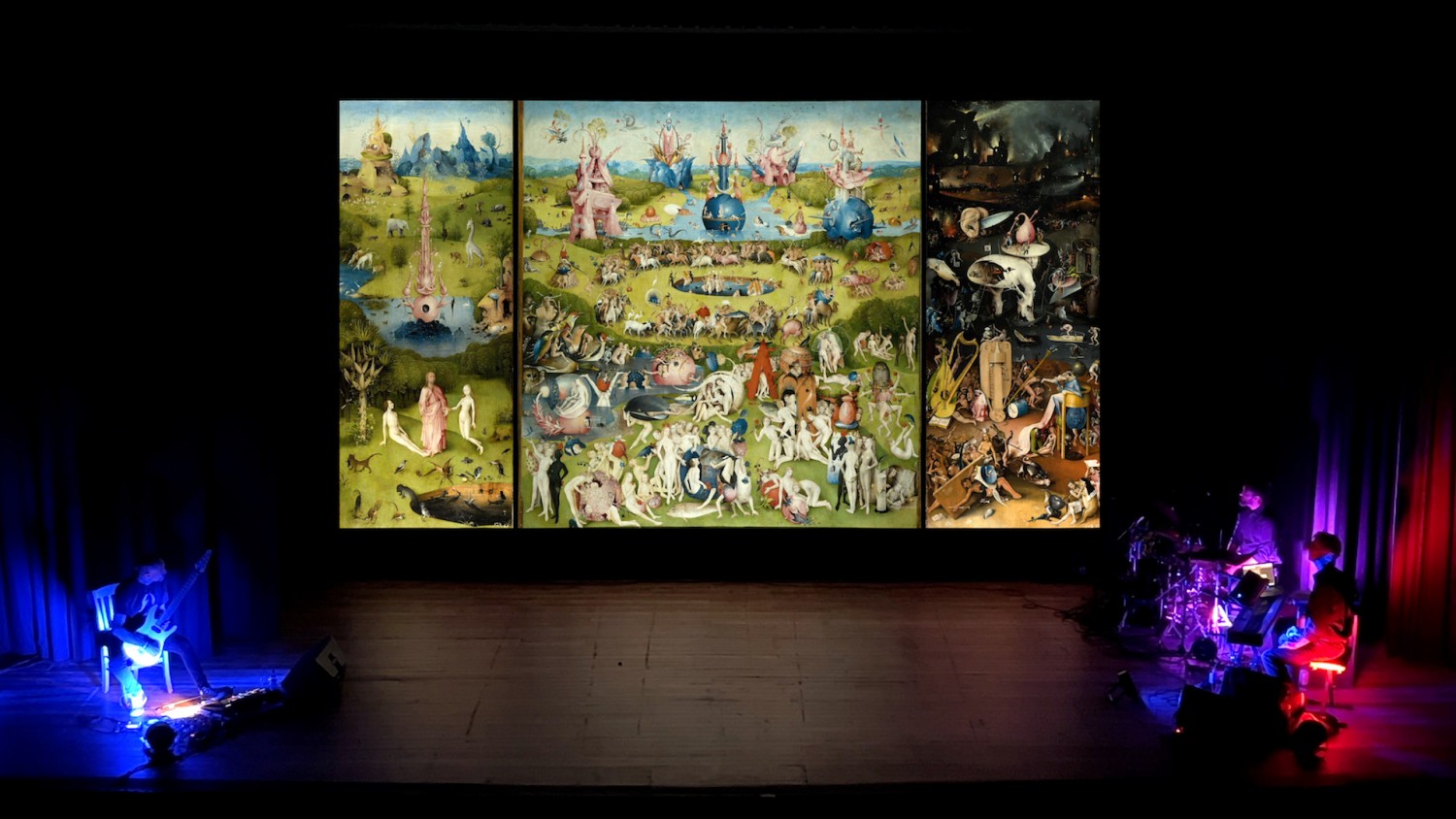 Grazie alla collaborazione con il videoartista spagnolo Jesús de la Iglesia, che ne ha curato la regia, “Antropocene” si configura come un’esperienza immersiva nell’opera che Bosch ha realizzato alla fine del Quattrocento: il quadro prenderà vita attraverso gli effetti speciali che la tecnologia di oggi permette, con l’inserimento di frammenti di immagini che richiamano le tematiche più critiche della modernità, mentre la musica dal vivo - eseguita dal pianista Paolo Paliaga (che è anche l’ideatore dello spettacolo), dal chitarrista Luca Pedroni e dal batterista e percussionista Patrizio Balzarini - accompagnerà gli spettatori in un viaggio profetico e profondamente emotivo.