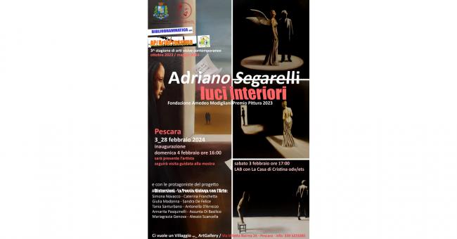 Domenica 4 febbraio dalle ore 16:00, inaugurazione di “Luci interiori” mostra personale dell’artista romano Adriano Segarelli, Premio Pittura 2023 Fondazione Amedeo Modigliani. La mostra si terrà presso “Ci vuole un villaggio aps_ArtGallery” (Via Villetta Barrea 24 - Pescara), proseguirà fino a domenica 25 febbraio 2024. Promossa da Bibliodrammatica aps e AP/ArteProssima progetto #npittic, direzione artistica curatoriale Beniamino Cardines, nell’ambito della 3^ stagione di arti visive contemporanee, col Patrocinio del Comune di Pescara. Un progetto di promozione scoperta e sensibilizzazione sulla nuova pittura italiana.