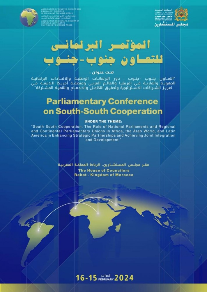 Per discutere il "ruolo dei parlamenti nazionali e delle Unioni parlamentari regionali e continentali in Africa, nel mondo Arabo e l’America latina nella promozione dei partenariati strategici e nel raggiungimento dell’integrazione e dello sviluppo comune", si terrà nei giorni 15 e 16 febbraio nella capitale del Marocco a Rabat, una conferenza parlamentare sulla cooperazione Sud-Sud, organizzata sotto l’alto patrocinio di Sua Maestà il Re Mohammed VI e su iniziativa della Camera dei Consiglieri del Marocco in collaborazione con l'Associazione dei Senati, della Choura e dei Consigli Equivalenti dell'Africa e del Mondo Arabo (ASSECAA).