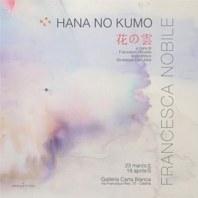 Catania - La galleria Carta Bianca è lieta di presentare la personale di Francesca Nobile dal titolo Hana no kumo (23 marzo-19 aprile, inaugurazione ore 18.30). La mostra, curata da Francesco Rovella, offre una prospettiva esaustiva della produzione dell'artista negli ultimi due anni, con opere che rappresentano il culmine del suo percorso pittorico e concettuale.