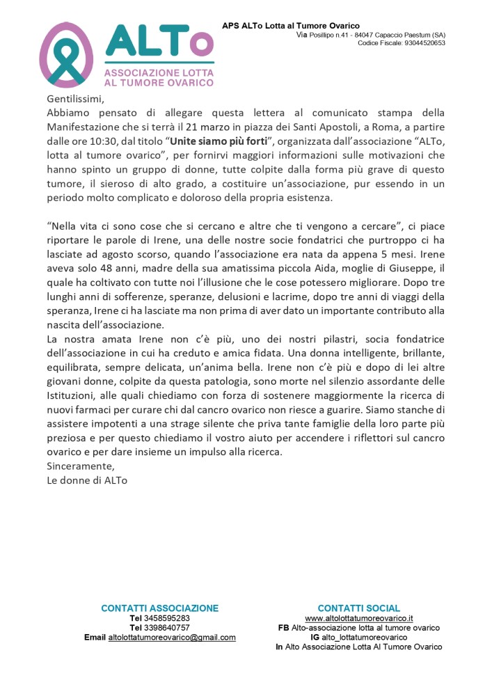 Email altolottatumoreovarico@gmail.com