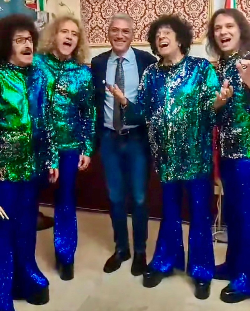 Proprio con i componenti della band ha festeggiato allo scoccare della mezzanotte del 17 marzo i suoi 40 anni! Il gruppo era infatti impegnato in un concerto a Santa Croce Camerina, in Sicilia. Con loro anche il sindaco della città, Peppe Di Martino. La piazza era gremita e l’affetto della folla accorsa per assistere all’esibizione della storica band è stato caloroso.