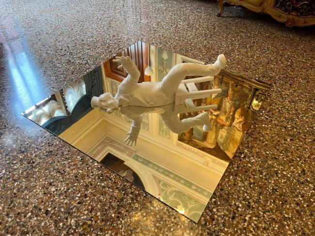 Se quella del clown è una figura contraddittoria, che esprime bene le sfaccettature della personalità umana, lo specchio porta il visitatore a riflettere su sé stesso e sulla propria complessa interiorità. Esso rappresenta visivamente la divisione interna all’uomo, tra ciò che mostra al mondo esterno e ciò che si cela. L’opera sarà visibile fino al 24 novembre 2024 presso il Padiglione del Grenada della 60esima edizione dell’Esposizione Internazionale d’Arte – La Biennale di Venezia.