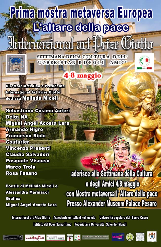 Un ensemble in grande stile alla Settimana della Cultura e degli amici dell’Uzbekistan di Aida Abdullaeva con la mostra dei ritratti storici e al prestigioso International art Prize Giotto del Critico d’arte Melinda Miceli con la Prima mostra metaversa europea "L'altare della Pace".