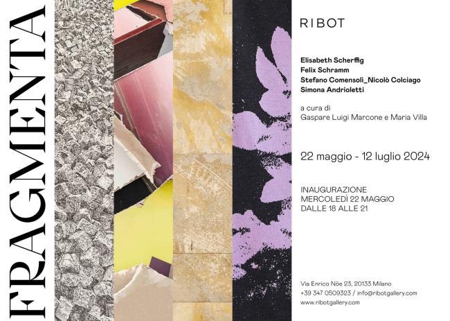 RIBOT è lieta di presentare Fragmenta la prima mostra collettiva ospitata in galleria. Un progetto che include Elisabeth Scherffig (Düsseldorf, 1949; vive e lavora a Milano), Felix Schramm (Amburgo, 1970; vive e lavora a Düsseldorf), Stefano Comensoli_Nicolò Colciago (Milano, 1990, Garbagnate Milanese, 1988; vivono e lavorano a Milano); Simona Andrioletti (Bergamo, 1990; vive e lavora a Monaco di Baviera e Milano). Fragmenta pone in dialogo i lavori di un gruppo selezionato di artisti di diverse generazioni la cui ricerca si sviluppa sia intorno all’idea di recupero e rielaborazione in chiave operativa e concettuale di “reperti” contemporanei e scarti abbandonati, sia sull’iconografia del “detrito” e della “maceria” intesi come simbolo di precarietà, ma anche di trasformazione e metamorfosi. In quest’ottica il tema del “frammento” assume un valore primario. Questo diviene elemento fenomenologico caratterizzante le opere e allo stesso tempo componente iniziale da cui far germinare una nuova e inedita unitarietà. Il processo additivo del segno o del gesto – oltre che dei “materiali” – è la costante da ritrovarsi in ciascuno dei lavori esposti ed è strumento funzionale alla rappresentazione di un’immagine in bilico tra costruzione e distruzione. L’atto compositivo che si genera dalla giustapposizione e rielaborazione di frammenti o detriti pre-esistenti, rimanda a un’idea ciclica del tempo e della memoria, a una riattivazione semantica e concettuale della materia e della storia. Confrontandosi con l’architettura e con la morfologia dello spazio espositivo, dove le grandi vetrine del piano terra sono soglie sottili tra interno ed esterno, le opere esposte in questo primo ambiente restituiscono l’atmosfera di un “cantiere” (creativo, culturale, sociale), un grande laboratorio corale in fermento. Transitando dal piano terra al piano sottostante, più raccolto e caratterizzato da un’atmosfera quasi underground, l’immagine, il processo, il residuo e la parola si raddensano e si stratificano in un perimetro più contenuto che propone tecniche, processi e linguaggi alternativi con sguardi sia privati sia militanti. ORARI: da lunedì a venerdì / dalle 15 alle 19.30 anche su appuntamento