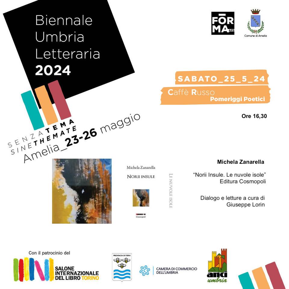 Sabato 25 maggio, nell’ambito della Biennale Umbria Letteraria, si terrà la presentazione della plaquette bilingue romeno/italiano “Norii Insule. Le nuvole isole” di Michela Zanarella, pubblicata da Editura Eikon/Cosmopoli con le traduzioni di Eliza Macadan. L’evento avrà luogo alle ore 16.30 al Caffè Russo di Amelia. Dialogo e letture a cura di Giuseppe Lorin. La raccolta si compone di poesie tratte da “Recupero dell’essenziale” Interno Libri (2022), di poesie tratte da “L’eredità del bosco” Macabor Editore (2023) e alcuni inediti. Fondamentale in questo progetto è il lavoro del traduttore che entra in completa sintonia con il poeta, fino a diventarne tramite di musicalità e bellezza. La dimensione del sogno, la memoria, la natura e i suoi elementi vanno a comporre un mosaico poetico che abbraccia l’infinito, le nuvole come isole in cui l’autrice riscopre sé stessa.