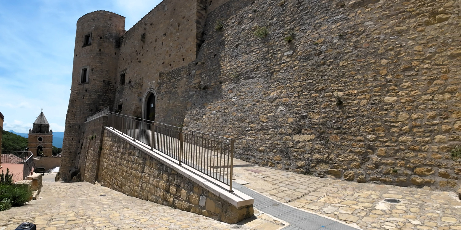 I Normanni trasformarono la preesistente Torre bizantina in una rocca che ancora oggi si ammira nella parte più alta dell’abitato, chiusa da mura di cui sono ancora visibili alcune tracce e collegate da quattro porte corrispondenti ai quattro punti cardinali. Le strade seguono l’andamento morfologico del territorio e si presentano irregolari, strette, tortuose, con acciottolato e interminabili gradinate, secondo una tipologia di sviluppo avvolgente. Il borgo si caratterizza per l’impianto urbanistico medievale e per le grotte risalenti al periodo romano scavate nel sottosuolo arenario.