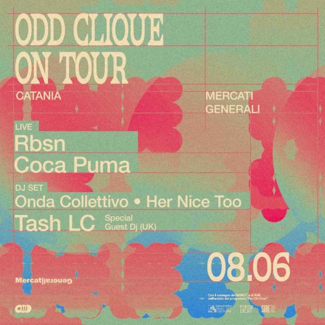 Grazie al bando “Per Chi Crea” con il supporto della SIAE e del Ministero della Cultura, le vibrazioni ibride e contemporanee della ODD Clique si stanno propagando in tutta Italia. Showcase completi di live e dj set, che coinvolgono in ogni tappa artisti e dj diversi. Dopo le date a Torino, Milano e Roma, sabato 8 giugno tocca agli storici Mercati Generali di Catania.